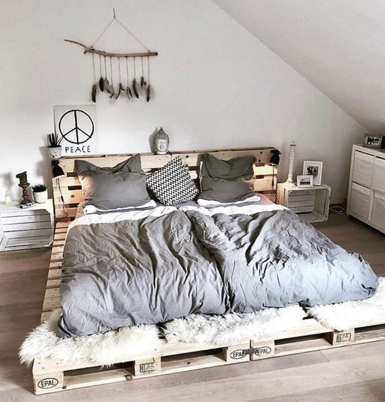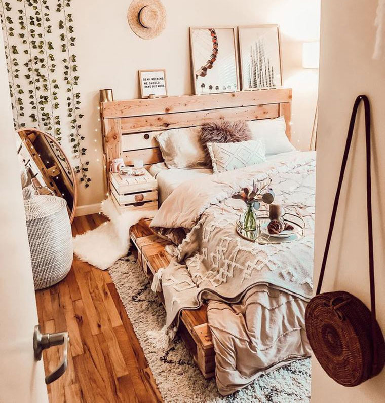 Với những người yêu thích phong cách nội thất bohemian phóng khoáng, giường gỗ pallet nhẹ nhàng là lựa chọn rất đáng tham khảo.