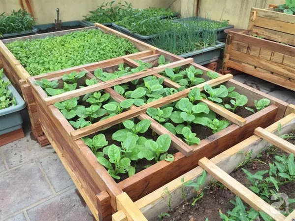 Tận dụng gỗ pallet làm một vườn rau nhỏ trên sân thượng là một ý tưởng không tồi. Mảnh vườn tự nhiên không chỉ làm đẹp không gian sân thượng mà còn là nguồn thực phẩm sạch cung cấp thức ăn cho gia đình, bạn bè và người thân.