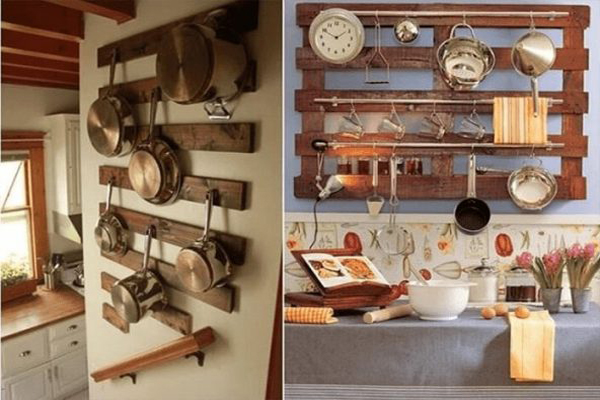Với ý tưởng tận dụng pallet làm giá treo đồ, bạn cũng có thể biến hóa linh hoạt để chức năng treo đồ, cất trữ đồ phù hợp với thói quen và nhu cầu sinh hoạt của gia đình. Sử dụng pallet làm giá treo mũ nón, hoặc treo vật dụng nấu nướng trong bếp, hoặc làm nơi cất giữ giầy dép…