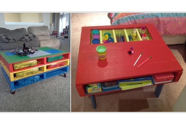 Chỉ cần đóng vài tấm pallet với nhau, sơn màu sặc sỡ là Qúy khách đã một chiếc bàn rộng và nhiều ngăn để cho lũ trẻ vui chơi. Hoặc đơn giản hơn chỉ cần “tút tát” cho một tấm pallet rồi đóng chân cho nó cũng đủ biến tấm pallet thành chiếc bàn vẽ rồi đấy!