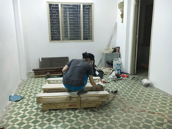- Pallet sau khi mua về, chà sạch bề mặt bằng giấy nhám để Pallet sạch, đẹp hơn.