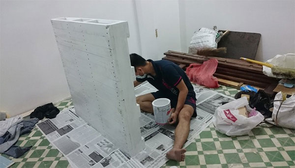 - Đợi sơn khô thì ghép lại với nhau bằng keo hoặc bắt vít vào tường để hoàn thành sản phẩm bàn, ghế gỗ phòng khách hoặc nhà ăn.