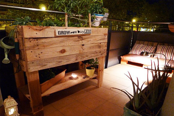 Một thiết kế kệ bằng gỗ pallet nghiêng thế này để cây trồng hứng được nhiều ánh sáng hơn cũng là một gợi ý không tồi. Chưa kể là khi trồng thật nhiều loại cây vào kệ gỗ nghiêng này trông chúng sẽ tươi tốt hơn rất nhiều.