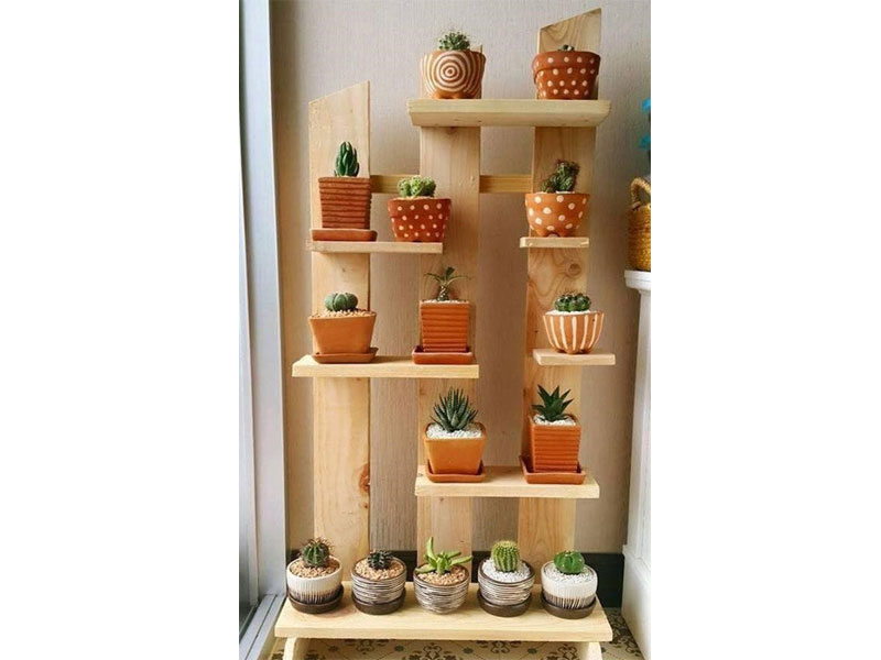 Không Gian Xanh Với Kệ Cây Cảnh Làm Từ Gỗ Pallet